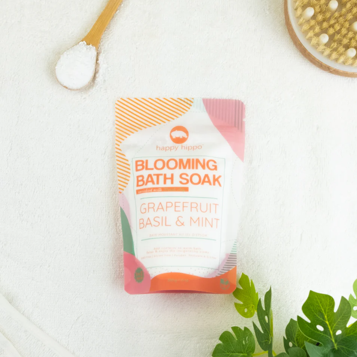 This soak from Happy Hippo blooms in the bath, spreading restorative sea salt, epsom salt, and french clay throughout, helping soothe and soften skin while drawing out impurities, leaving you refreshed and invigorated.