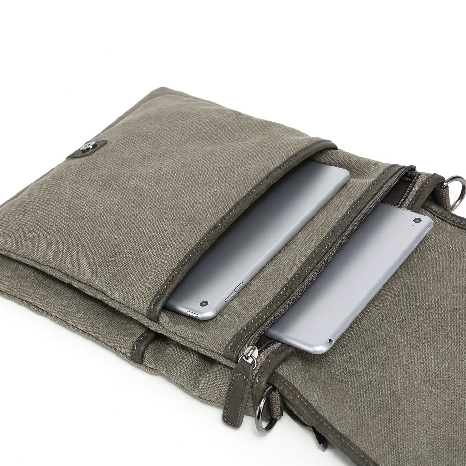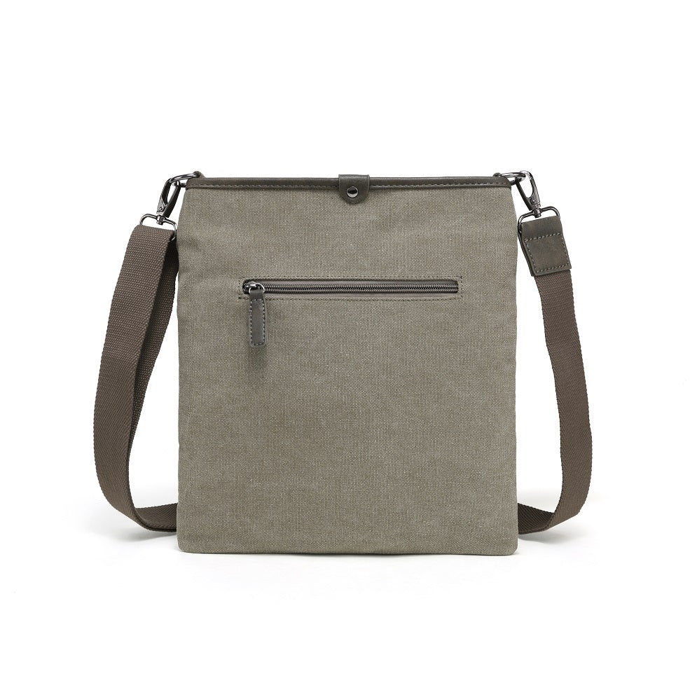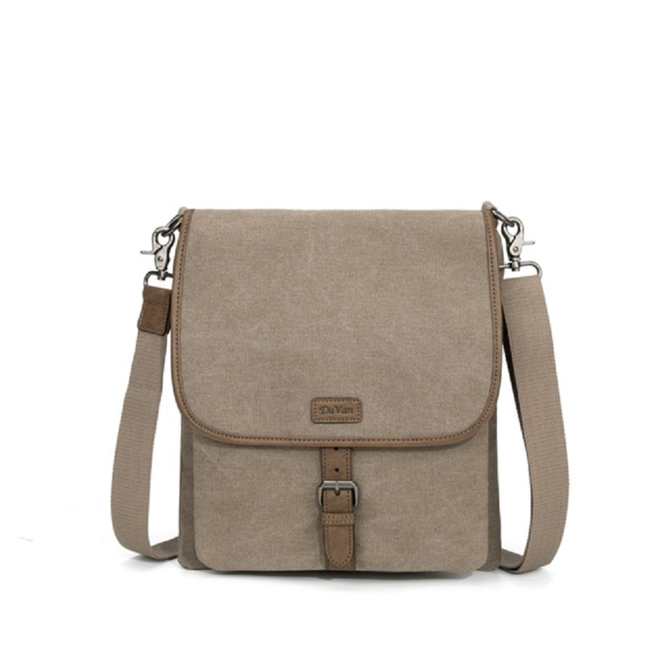 The perfect bag for exploring new cities or running errands around town. This unisex canvas messenger bag features a magnetic clasp buckle for easy access to your belongings without sacrificing details. The colour of the vegan leather trim unique to each bag colour.