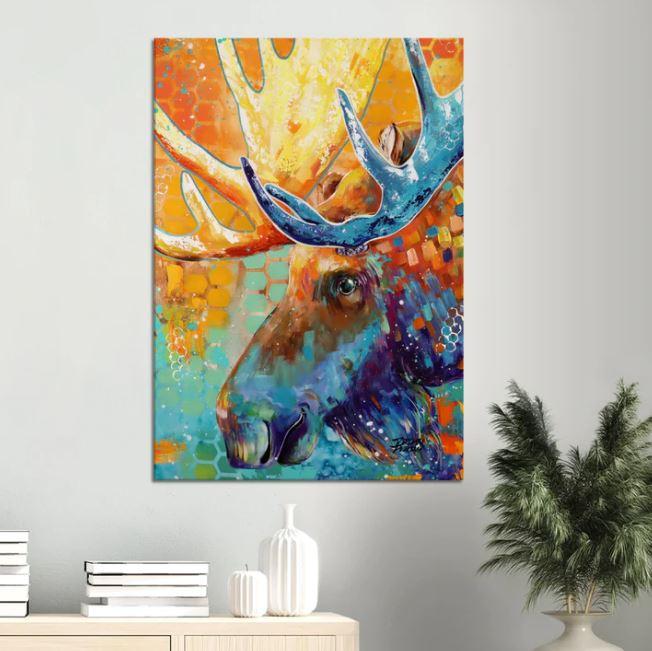 This Sunny Side Up Canvas print is a showstopping piece, depicting a warm and inviting scene. Its rays of sunshine and vibrant colors bring the majestic moose to life, while its big antlers radiate an illuminating glow. A luxurious and timeless piece, it's a perfect addition to any sophisticated and elegant home.