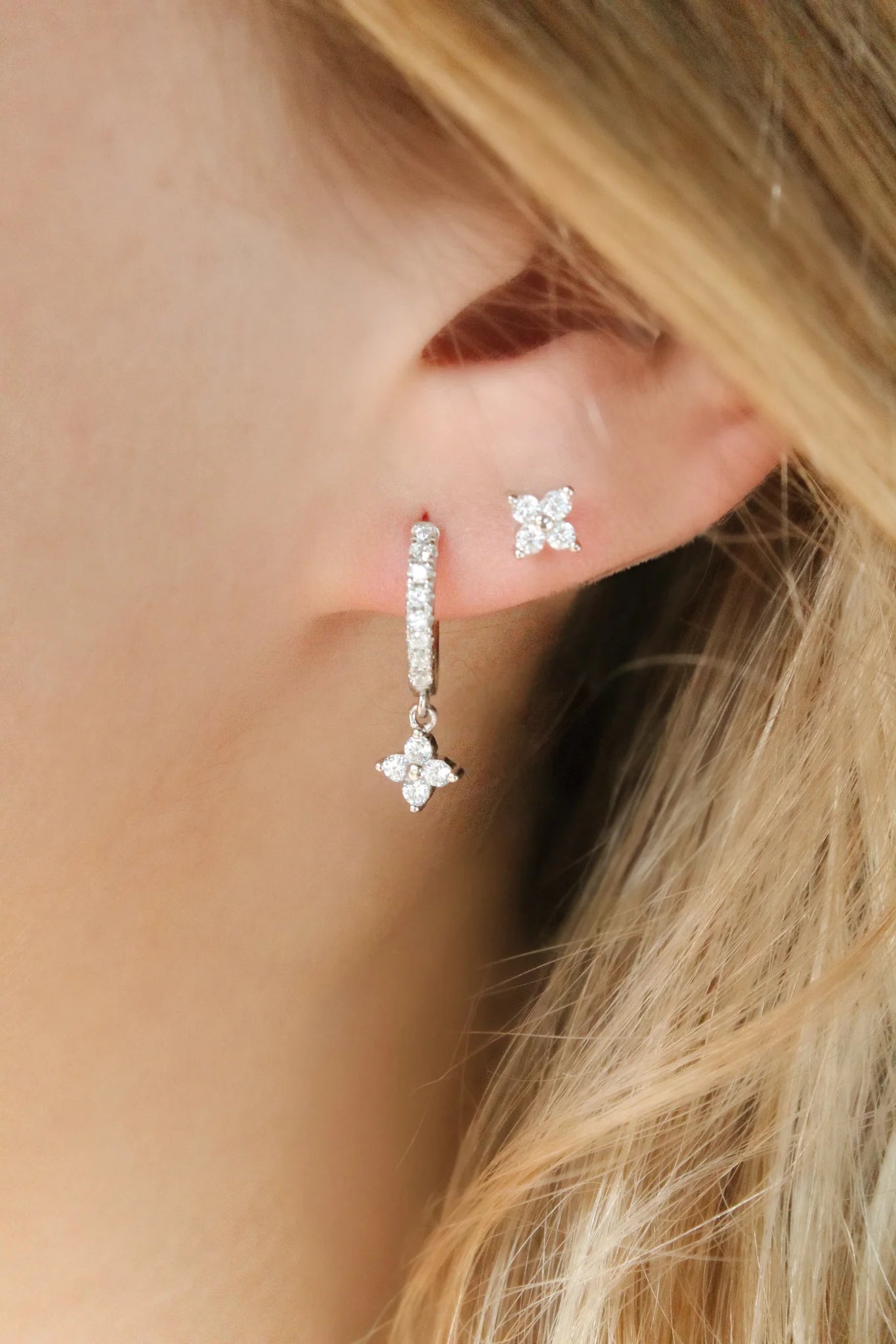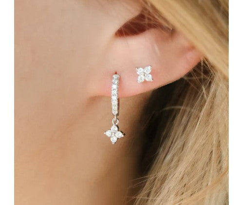 Elegant and eye-catching, the Paisley Hoop features a CZ-lined huggie with a sparkling floral charm drop. Its delicate design adds movement and shine to any look. Designed to pair seamlessly with our matching Paisley Stud for a coordinated, curated ear stack. Sterling silver and perfect for stacking or standing out solo.